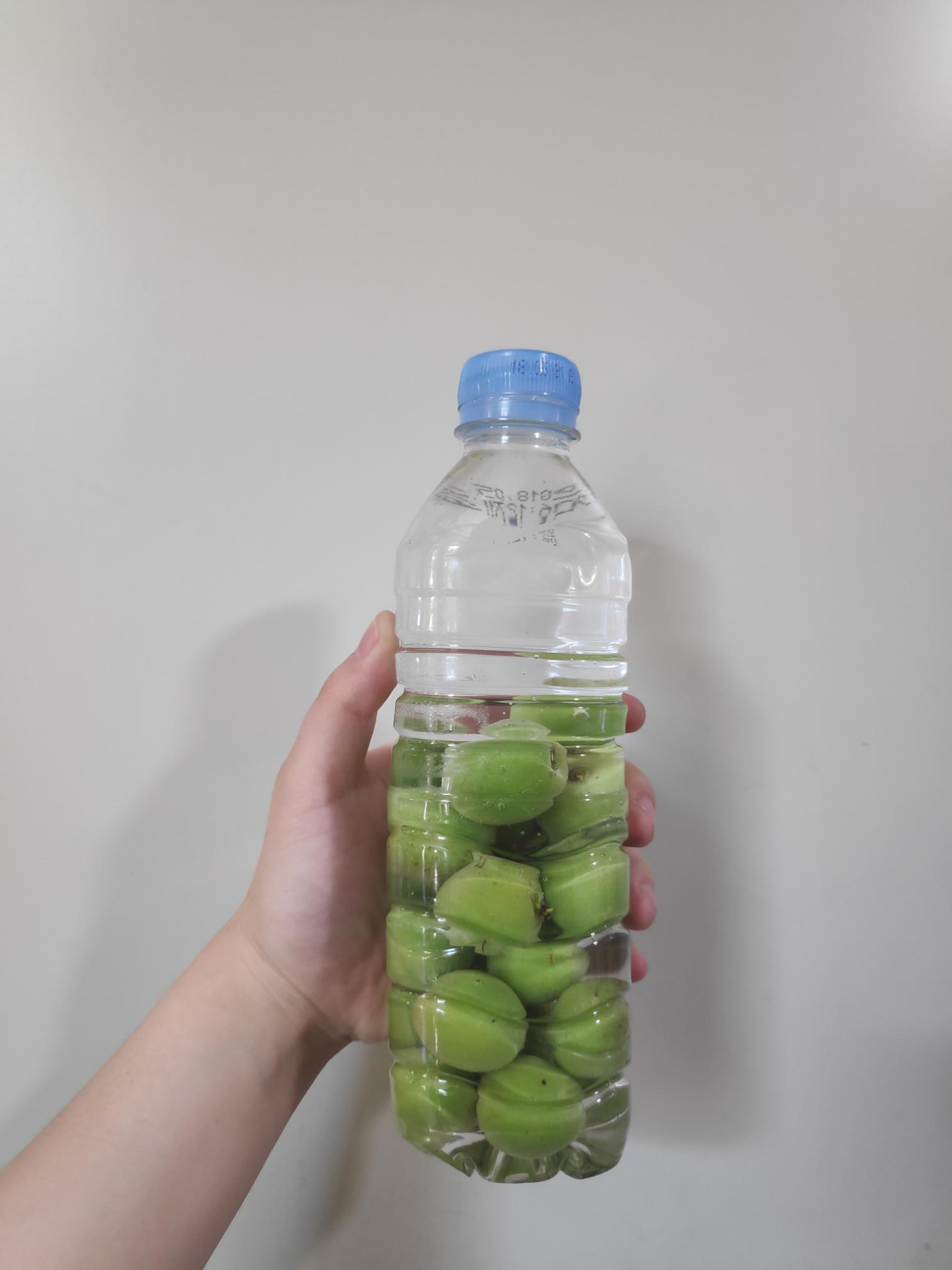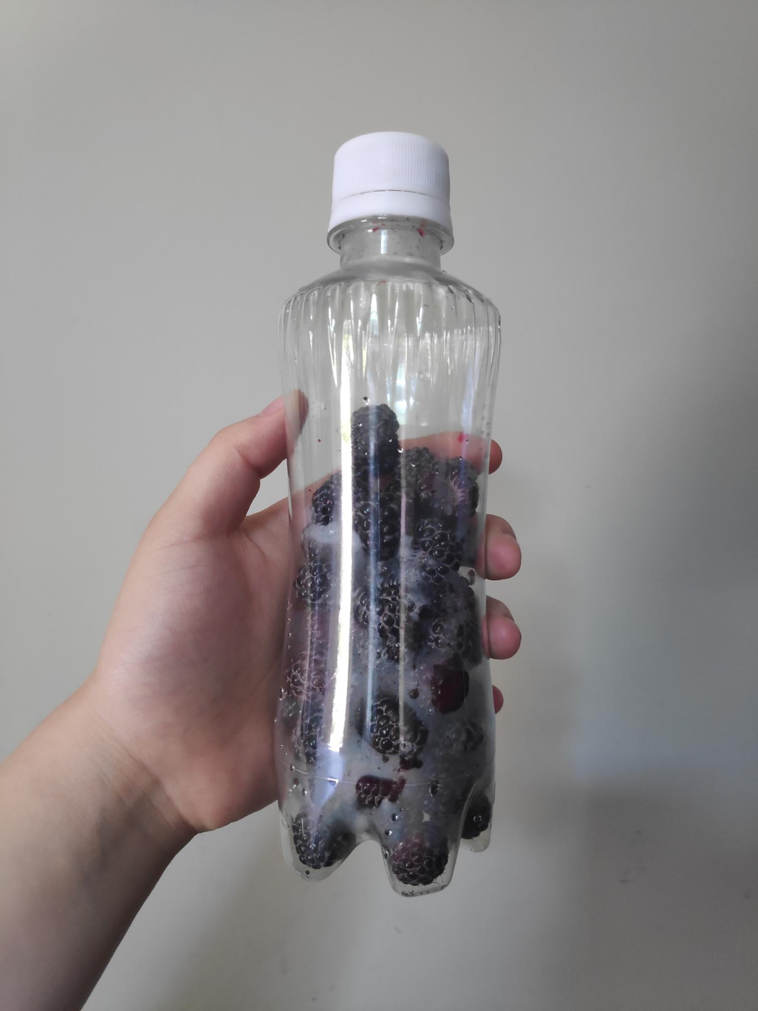 주변에 안쓰는 페트병이 있다면 물로 헹궈주고 그 안에 복분자를 채워주세요. 복분자를 얼마나 넣느냐는 본인의 재량이겠죠? 저는 토닉워터 빈병에 담갔답니다ㅎㅎ.